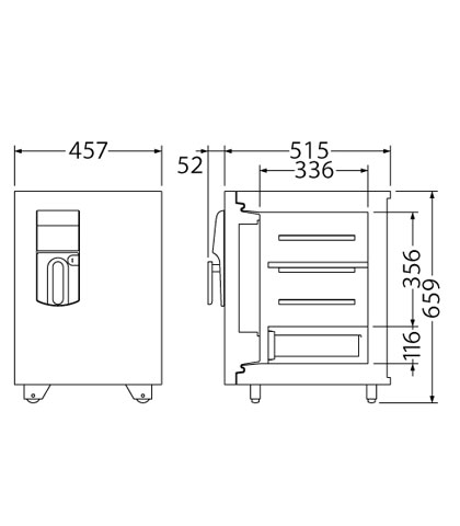 | A4ファイル基準の収納設計、15分の防盗性能、オススメの商品です!を縦置きで収納したり、さらに重要な物は庫内の鍵付引出しへ収納できます。同シリーズのロックタイプはダイヤル、テンキー、指紋認証、フェリカICカードの4種類が選べます。 |